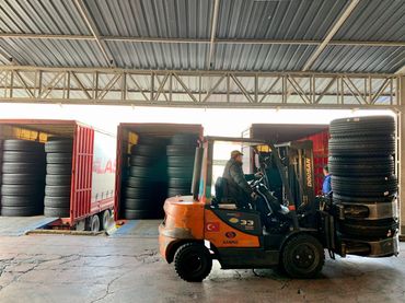 TÜM ELLEÇLEME İŞLEMLERİMİZİ ÖZEL LASTİK TAŞIMA ATAÇMANLI FORKLİFTLERİMİZLE YAPTIĞIMIZ İÇİN HEM LASTİKLERİN HERHANGİ BİR ZARAR GÖRMEMESİNİ SAĞLIYORUZ HEM DE İNSAN GÜCÜ VE ZAMANDAN TASARRUF SAĞLIYORUZ.